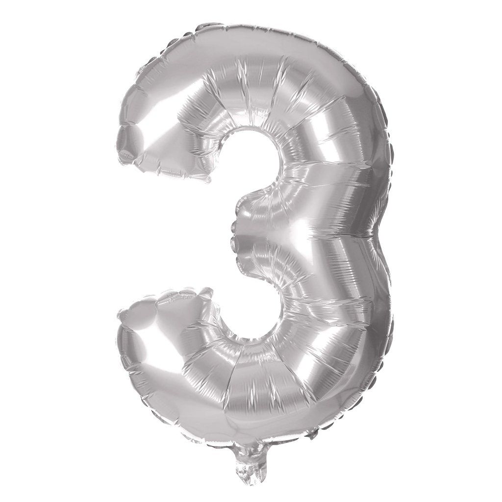 Balónek foliový TORO číslice 3 30cm stříbrný