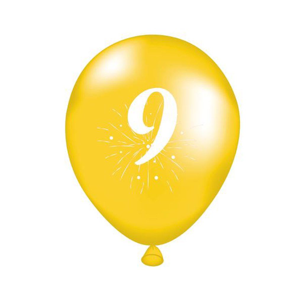 Party balónky s potiskem číslice "9" jsou vhodné na oslavu narozenin či různých výročí. Balení obsahuje 5 ks balónků (2x oranžový, 2x zelený, 1x žlutý o rozměru cca 25 cm (po nafouknutí). Balónky nafukujte pouze do přiměřeného rozměru. Manipulace dětí s balónky by měla probíhat pouze pod dozorem dospělé osoby. Skladujte při teplotách nad 10°C. Vyrobeno z přírodního latexu.Doplňkové parametry