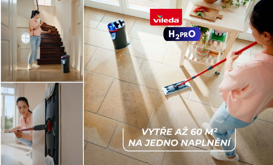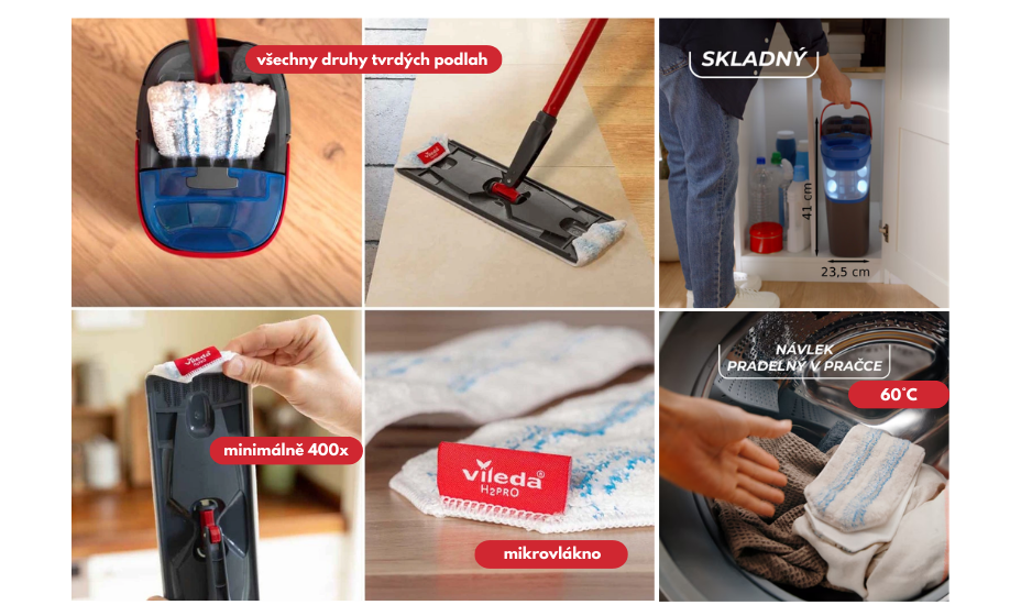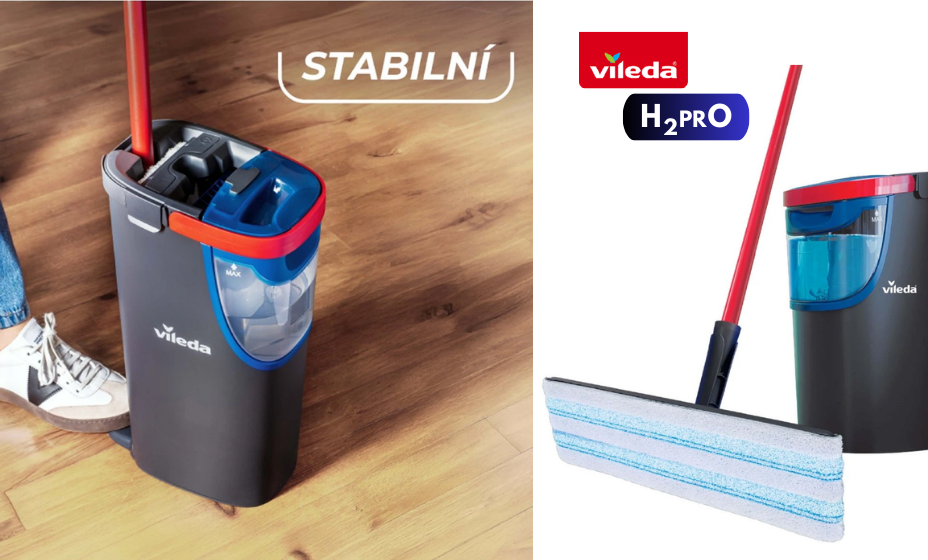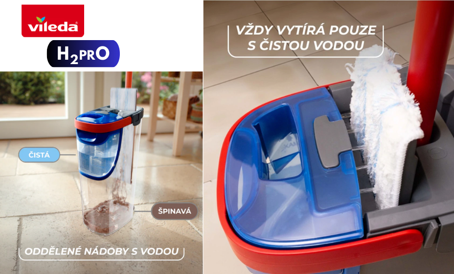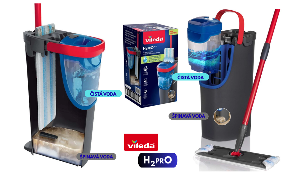Moderní mop Vileda H2PRO plochý mop přichází s jednoduchou, ale zásadní myšlenkou:
