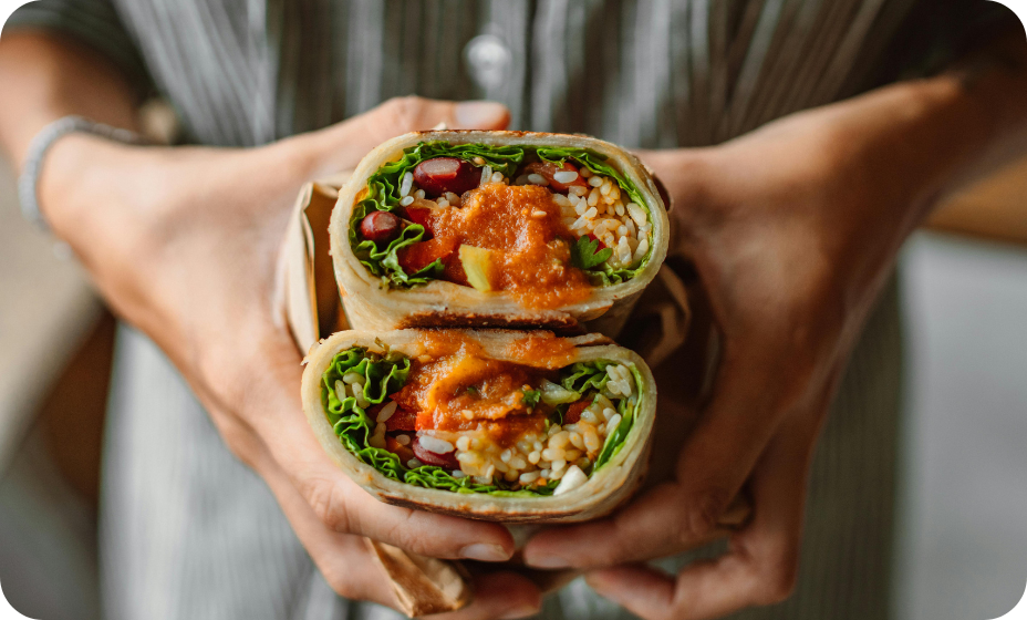 - wrapy – tortilla naplněná šunkou, sýrem, zeleninou nebo trhaným kuřecím masem. Lehce se balí a jí i bez příboru.