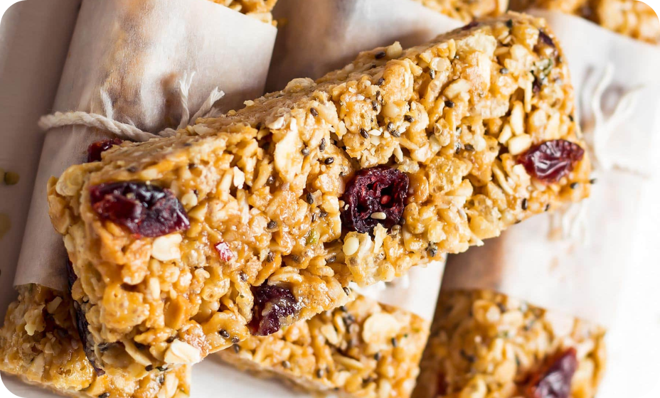 - domácí ovesné tyčinky – vločky, med, oříšky a sušené ovoce. Energetická bomba, která zasytí a je levnější než kupované.