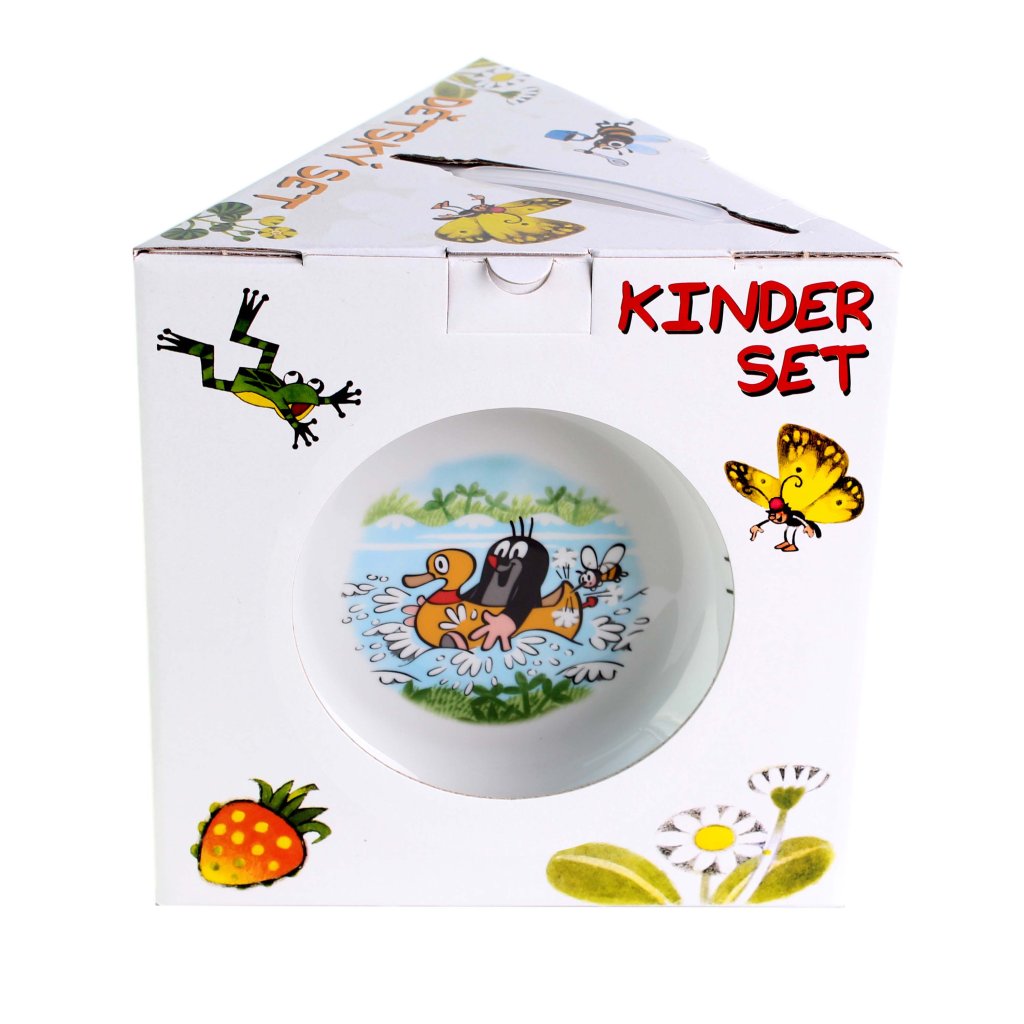 Porcelánová jídelní sada THUN potěší každého malého strávníka. Dětská souprava obsahuje talířek, misku a hrnek, vše s motivem oblíbeného hrdiny – krteček a jeho kamarádi. Souprava je vyrobena v Čechách z tradičního kvalitního porcelánu, který je zdravotně nezávadný a certifikovaný. Všechny součásti můžete mýt v myčce i použít v mikrovlnné troubě. Sady jsou v několika motivech a je potřeba zvolit ten správný.