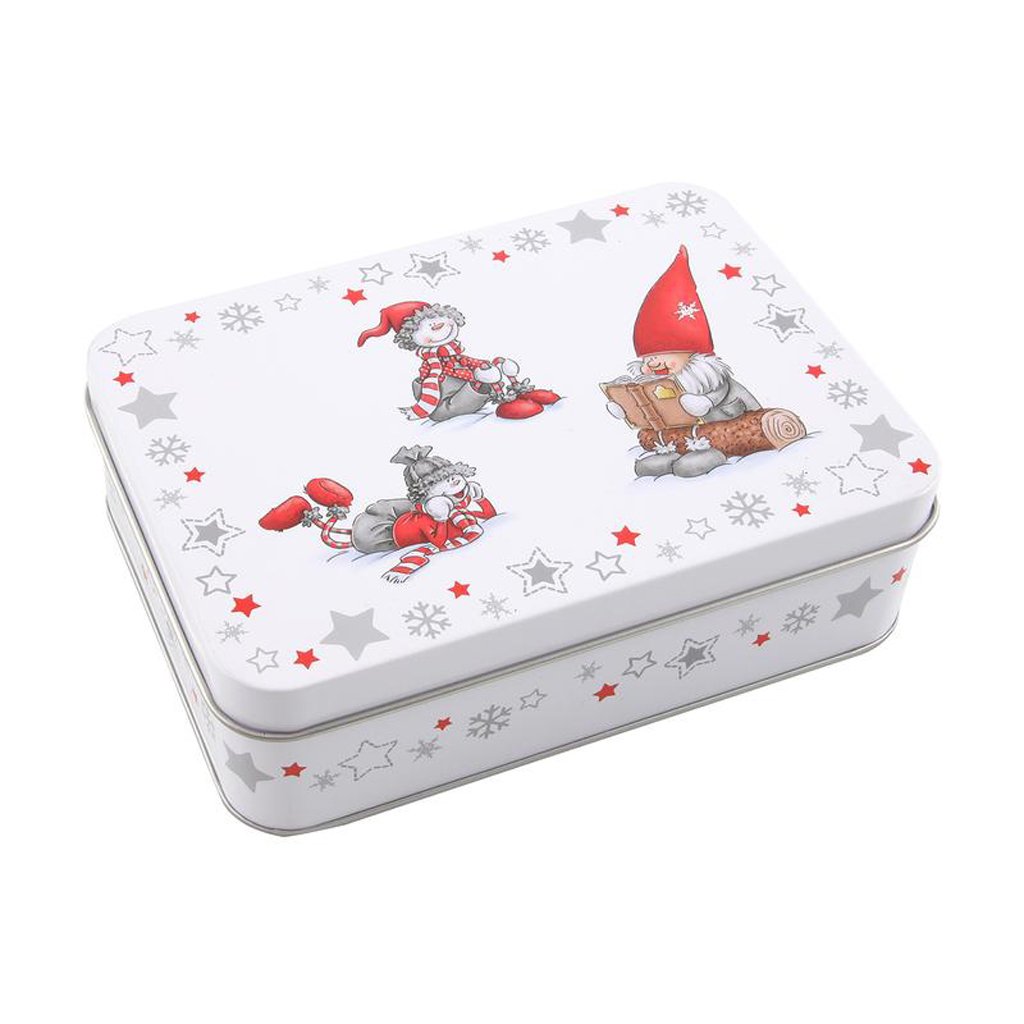 Praktická plechová dóza zaručí snadné skladování Vašich potravin a ušetří čas a místo v kuchyni. Rozměry - 14 x x10 x 4,2 cm, vánoční motiv.Doplňkové parametry