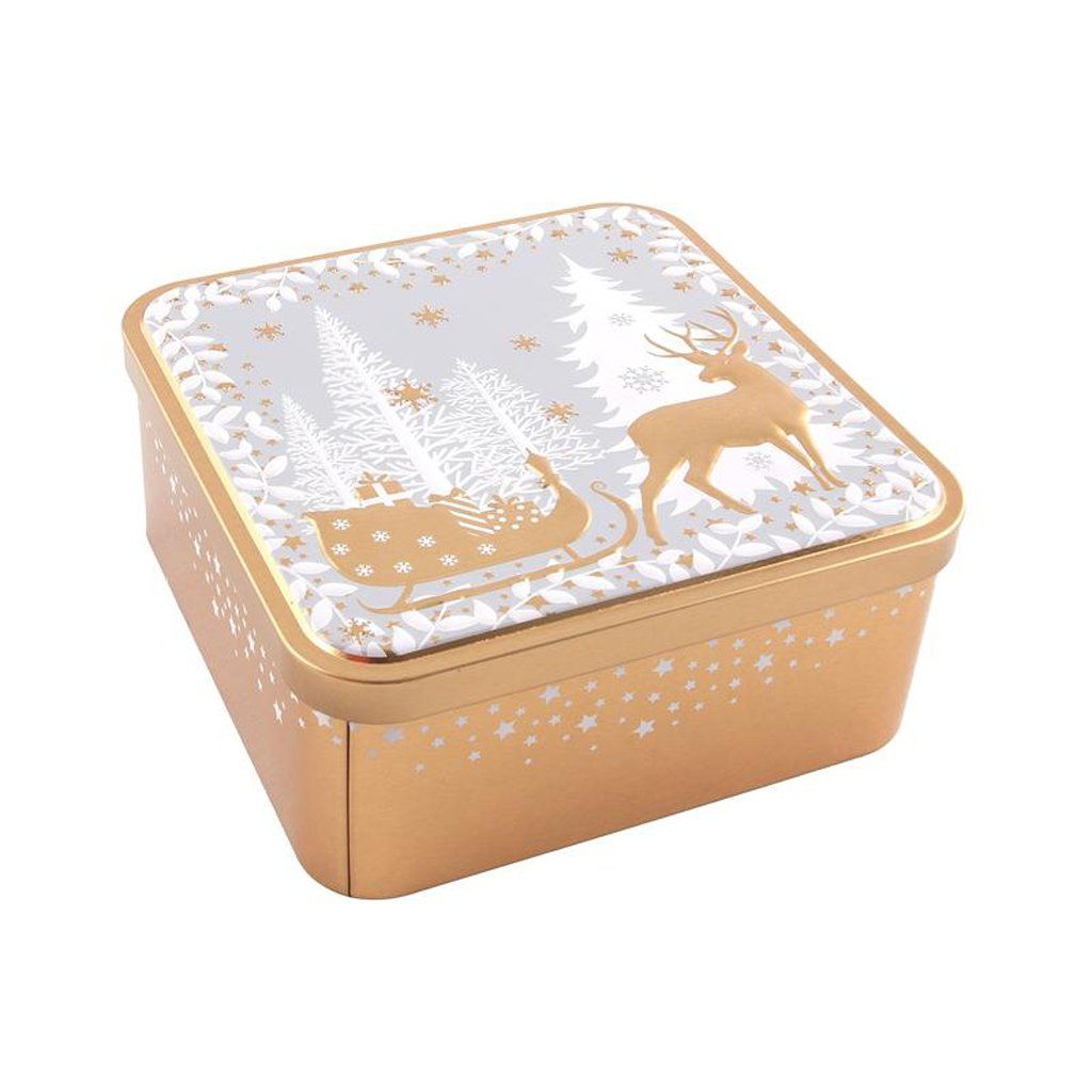Praktická plechová dóza zaručí snadné skladování Vašich potravin a ušetří čas a místo v kuchyni. Rozměry - 15 x 15 x 7 cm, vánoční motiv.