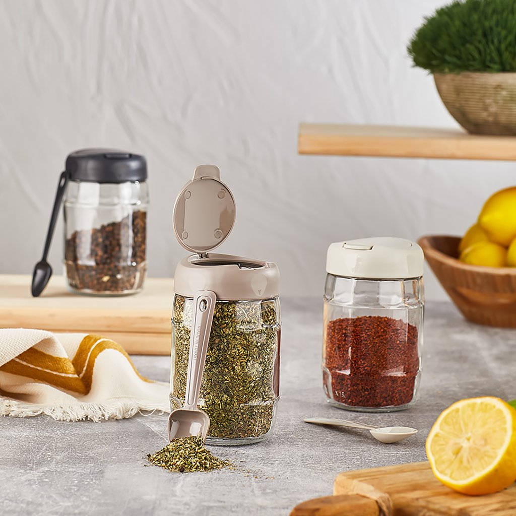 Skleněná kořenka s víčkem a lžičkou