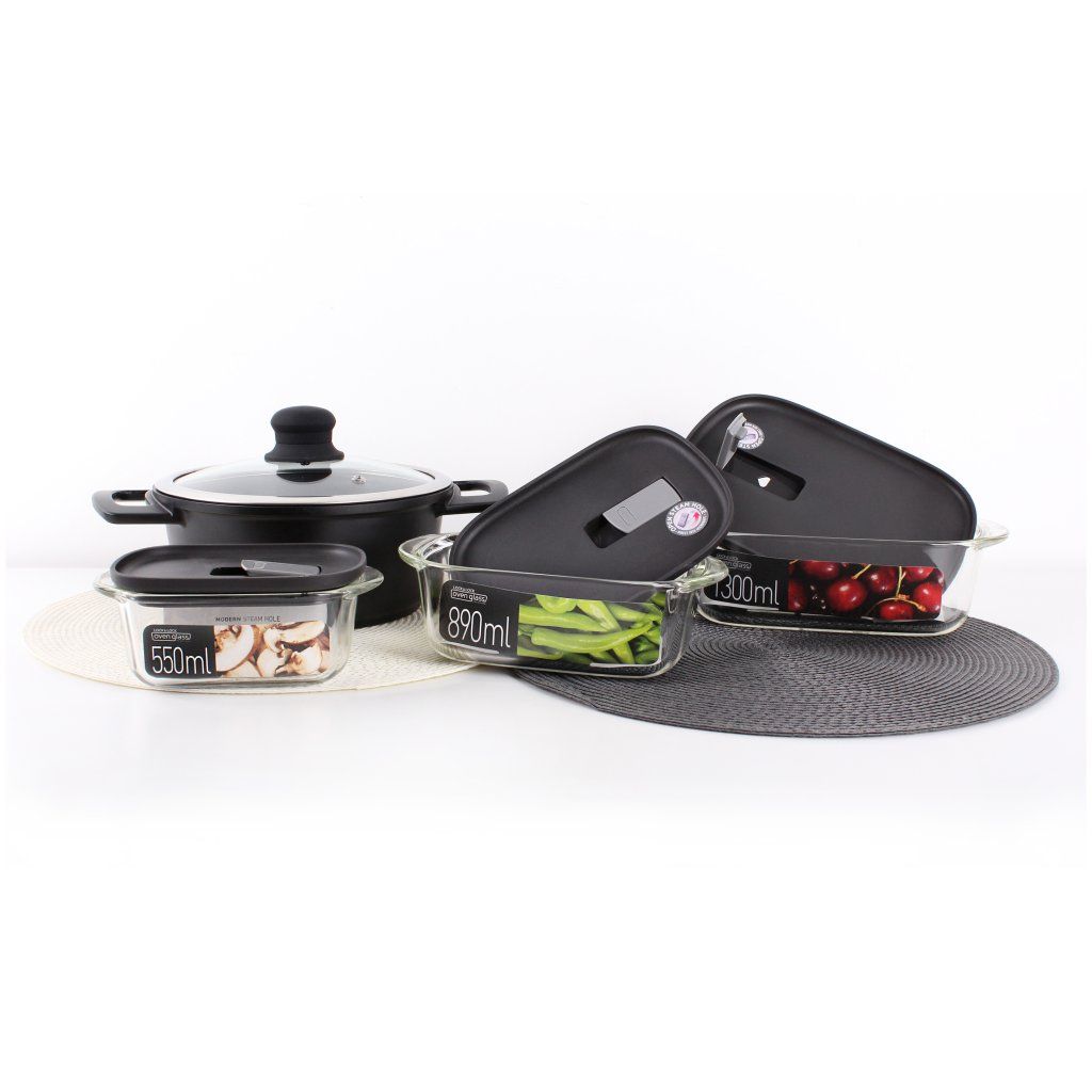 Skleněná zapékací miska s víkem LOCK 890ml borosilikát