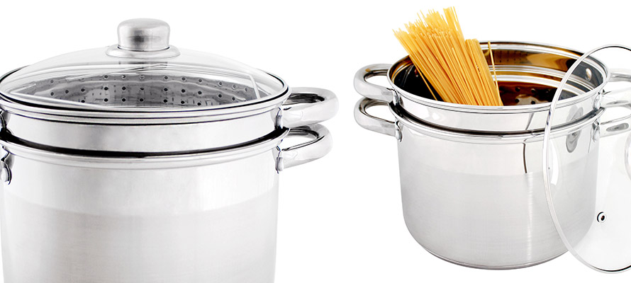 - Nerezové nádobí – kvalitní nerezové zpracování je zárukou dlouhověkosti. Vysoká odolnost proti poškození i teplotním změnám. Nerezové hrnce mají zpravidla dvojité dno, které zaručí rovnoměrný ohřev a zároveň snižuje spotřebu energie. Nádobí s nerez uchy jde použít i v troubě. Nerezové nádobí je vhodné na všechny druhy sporáku a to i včetně indukce. Jednoduchá údržba, vhodné i do myčky na nádobí.