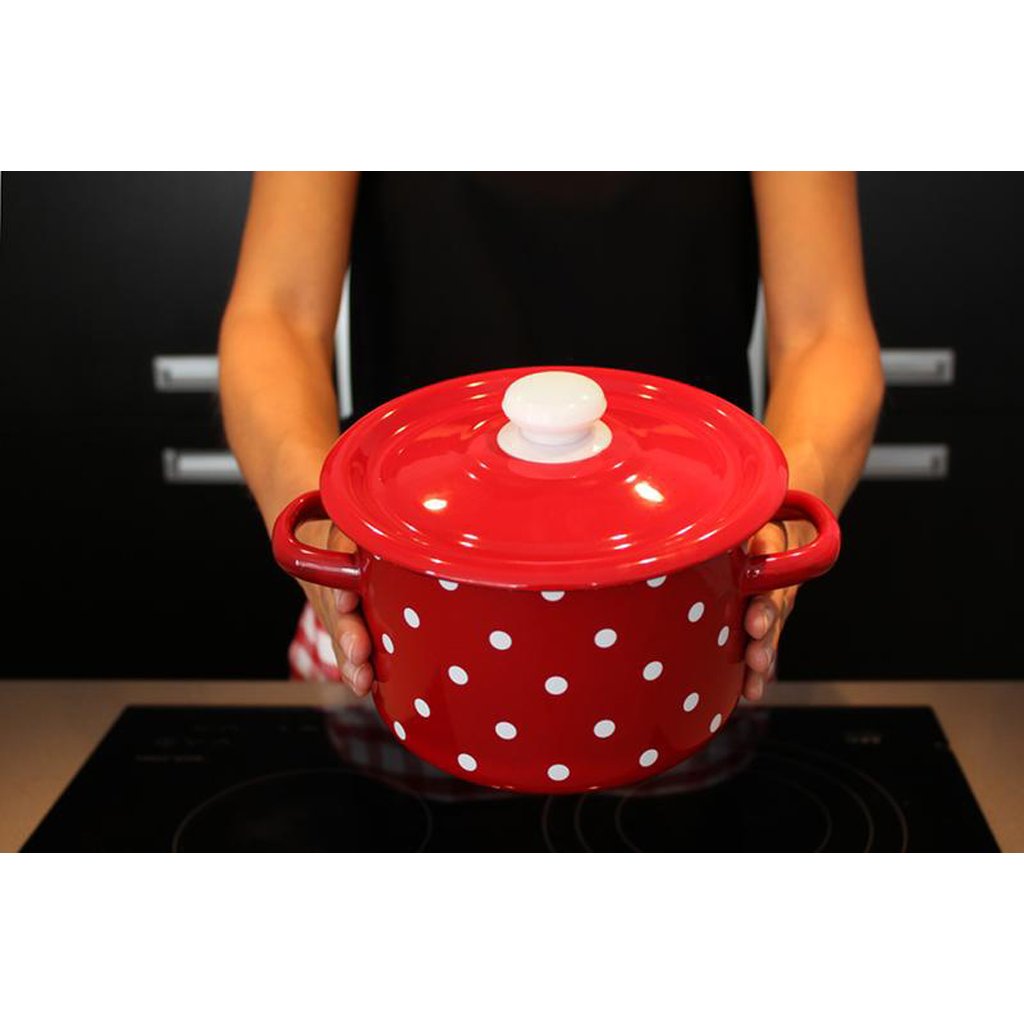 Smaltovaný hrnec s poklicí 2l puntíky