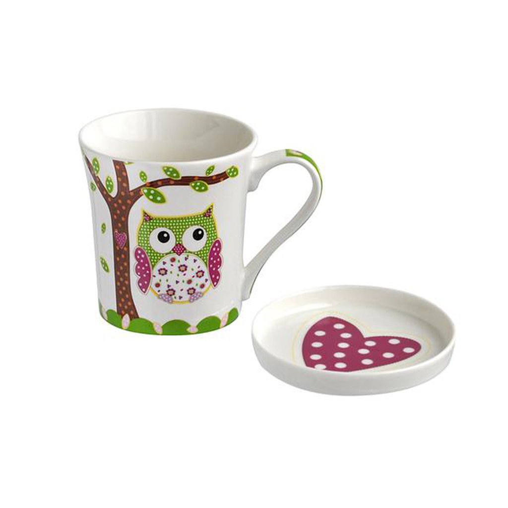 Hrnek o objemu 270 ml s krásným oblíbeným motivem "sova". Vhodný na čaj, s odkládacím táckem na čajové sáčky. Materiál - porcelán.Doplňkové parametry