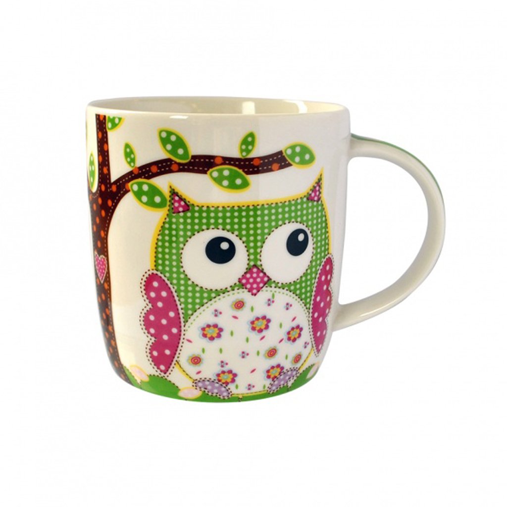 Hrnek 350 ml, dekor sova, zelená/modrá