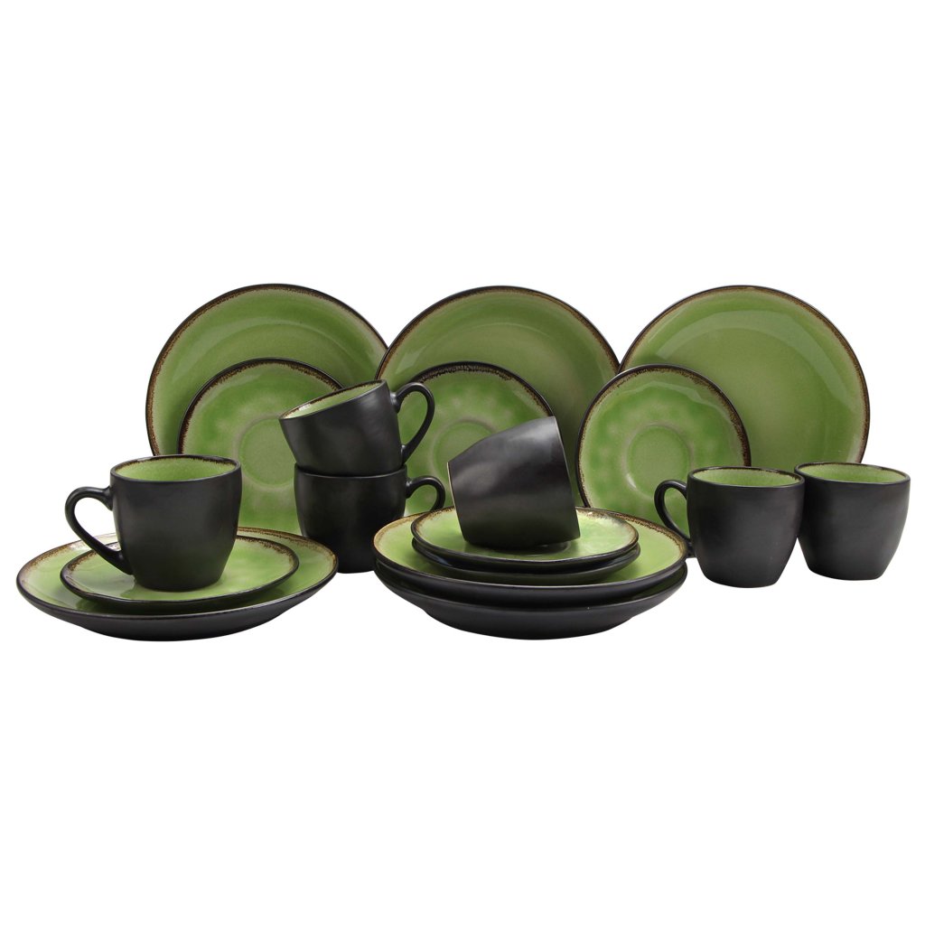 Keramická sada šálků a dezertních talířku CORFU 18ks zelená/černá