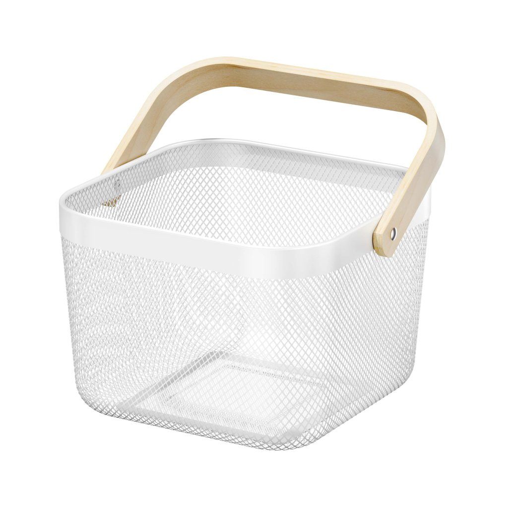 KOŠÍK ÚLOŽNÝ DŘEVĚNÁ RUKOJET, BÍLÝ KOVOVÝ