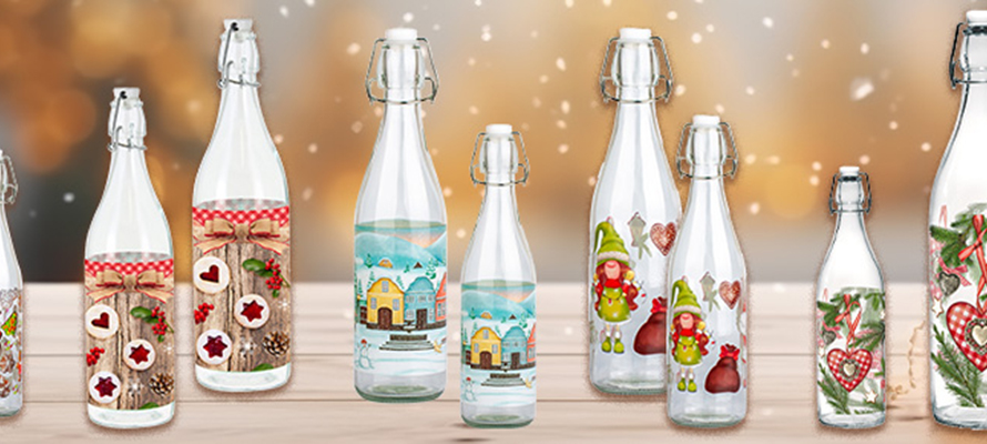 Skleněná láhev s víčkem TORO 500ml vánoční dekor