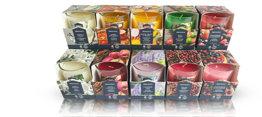 Vonná svíčka ve skle PROVENCE 30 hodin lesní plody a cedrové dřevo