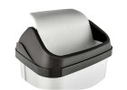 - Odpadkový koš s výklopným víkem – jednoduché a téměř nezničitelné víko. Snadná manipulace. Při otevřeném výklopném víku nezvětší koš příliš svou výšku, proto se dá velmi dobře používat i do skříněk a zásuvek