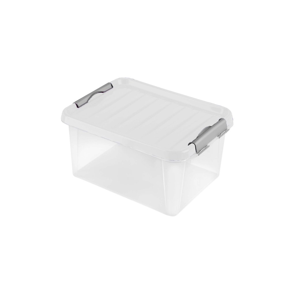 Plastový úložný box HEIDRUN 14 litrů s praktickým víkem. Kvalitní plastový box je skvělý pomocník na uchování, skladování a ochranu velkých věcí i drobností, oblečení, hraček i peřin. Úložná krabice ochrání vše před nečistotami, prachem, vlhkem a poškozením. Díky transparentnímu materiálu máte vše přehledně a bezpečně uloženo na policích, ve skříni nebo pod postelí. Své velké uplatnění najdou úložné boxy i v garáži nebo dílně. Víko se k tělu boxu přichytí pevnými klipy.