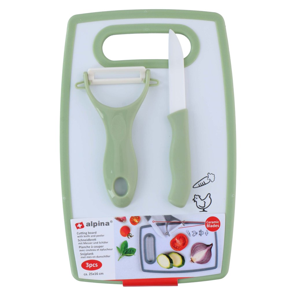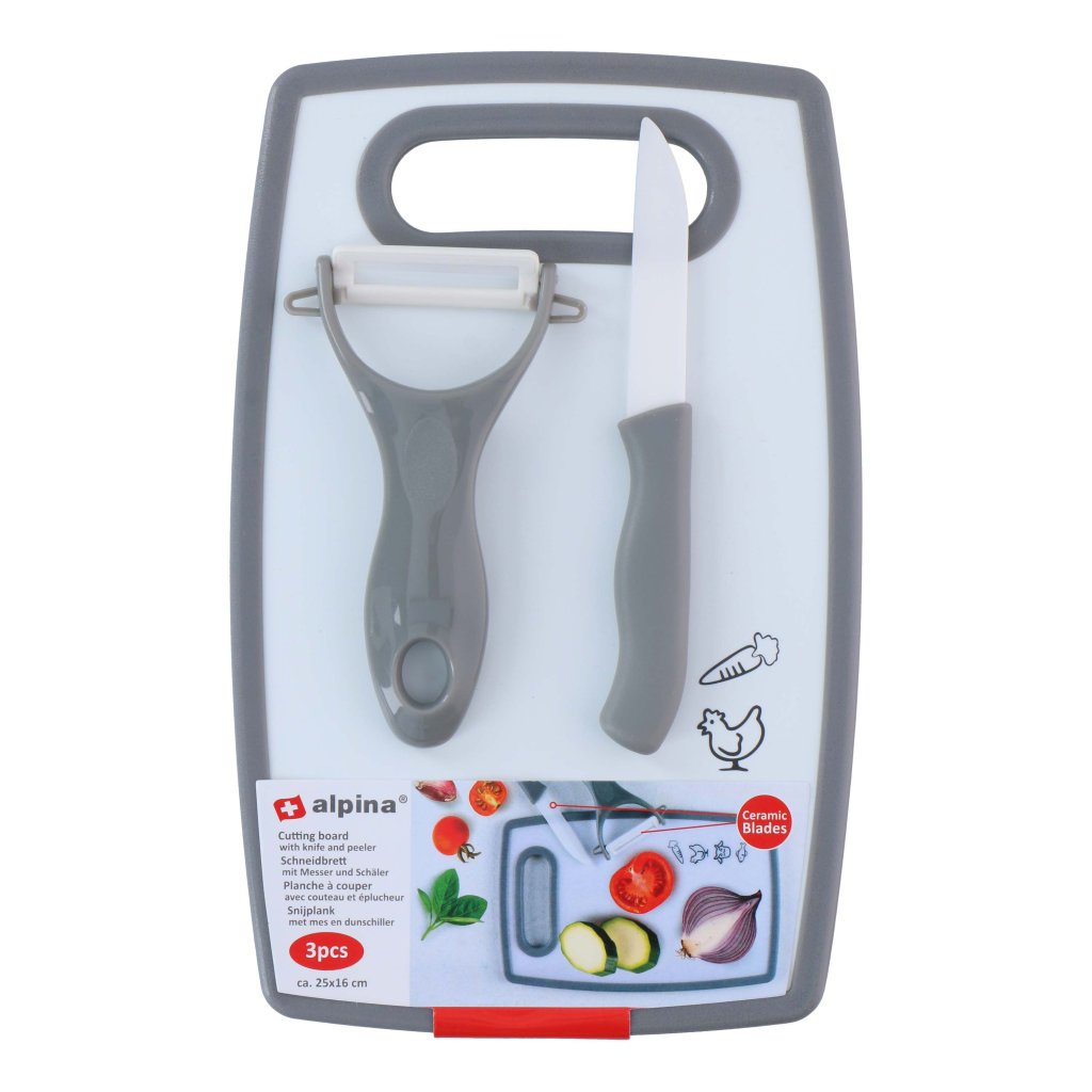 Kuchařský set ALPINA prkénko, škrabka, nůž MIX motivů