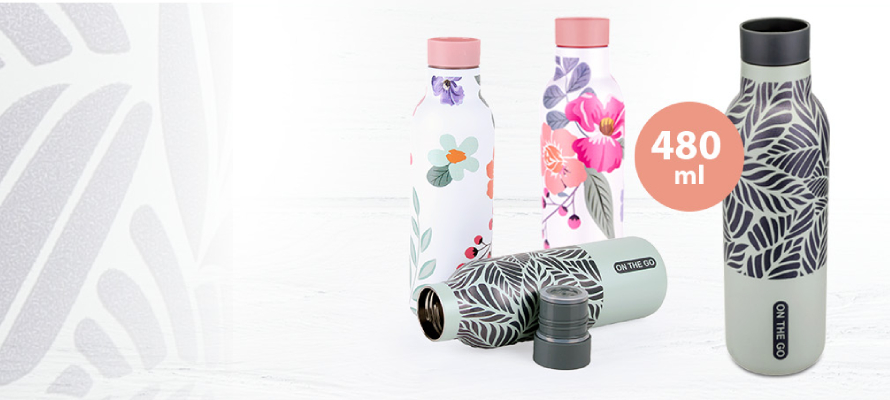 Nerezová termoska se stop ventilem KITCHISIMO 480ml růžová
