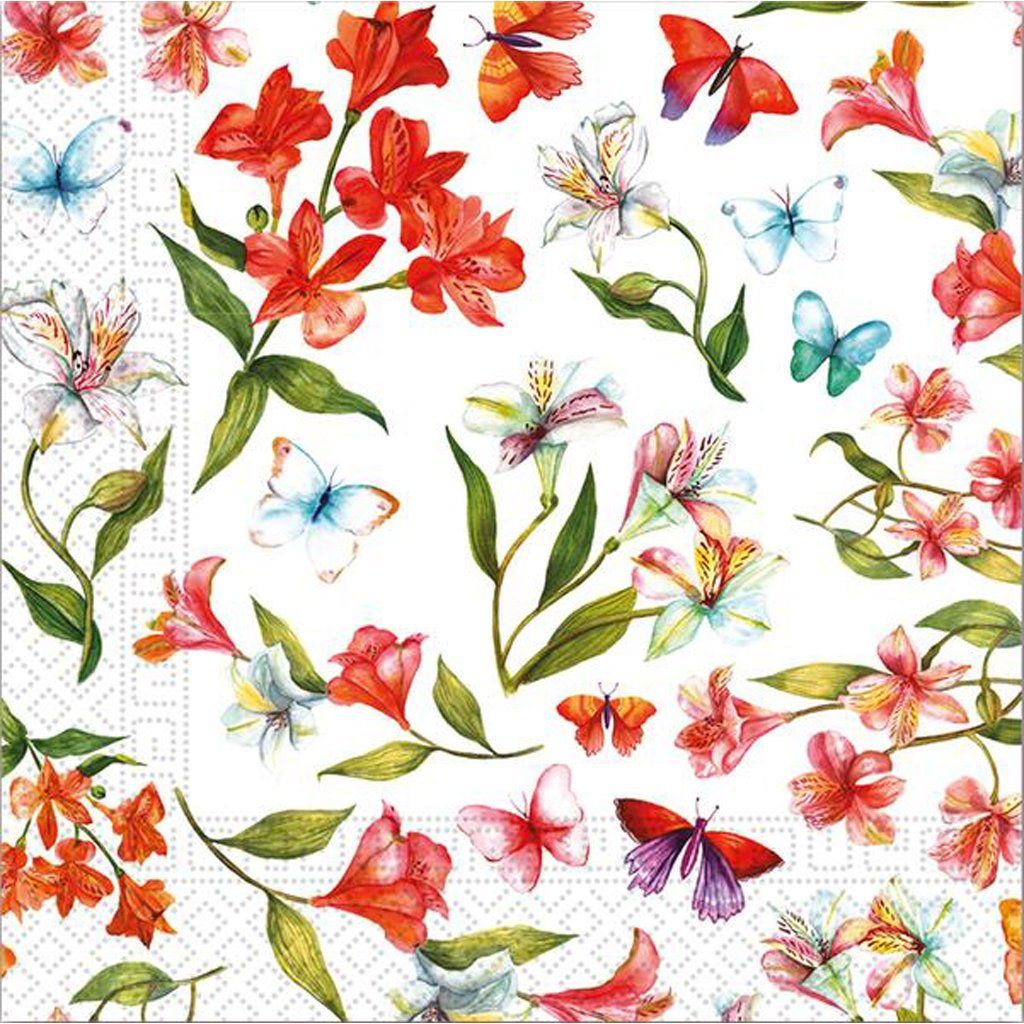 Papírové ubrousky dodají prostřenému stolu příjemnou atmosféru u slavnostní večeře. Ubrousek je 3 vrstvý, v balení 20 ks, motiv -květiny a motýli.