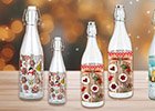 Láhve a sklenice se svátečním dekorem