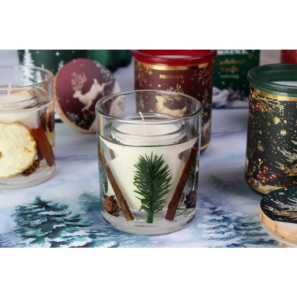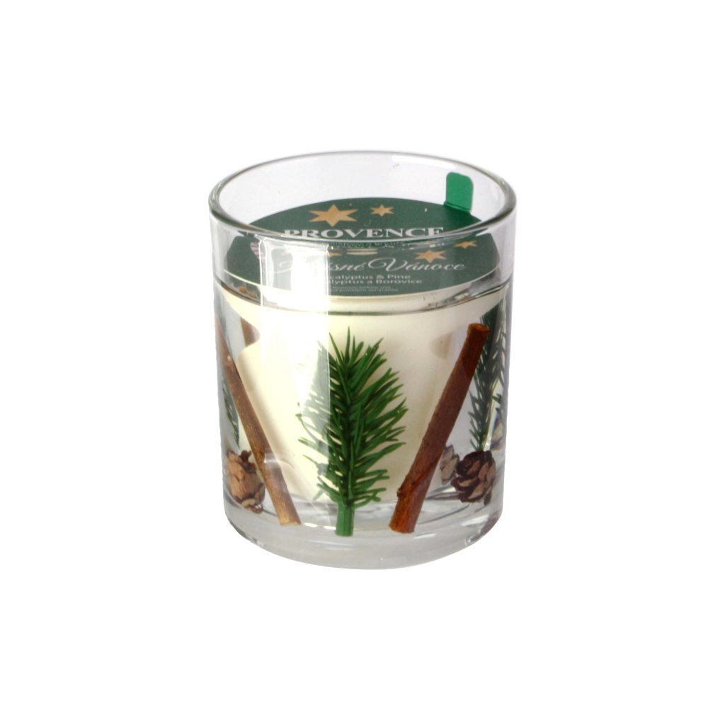 Vánoční vonná svíčka ve skle PROVENCE 18 hodin eukalyptus borovice