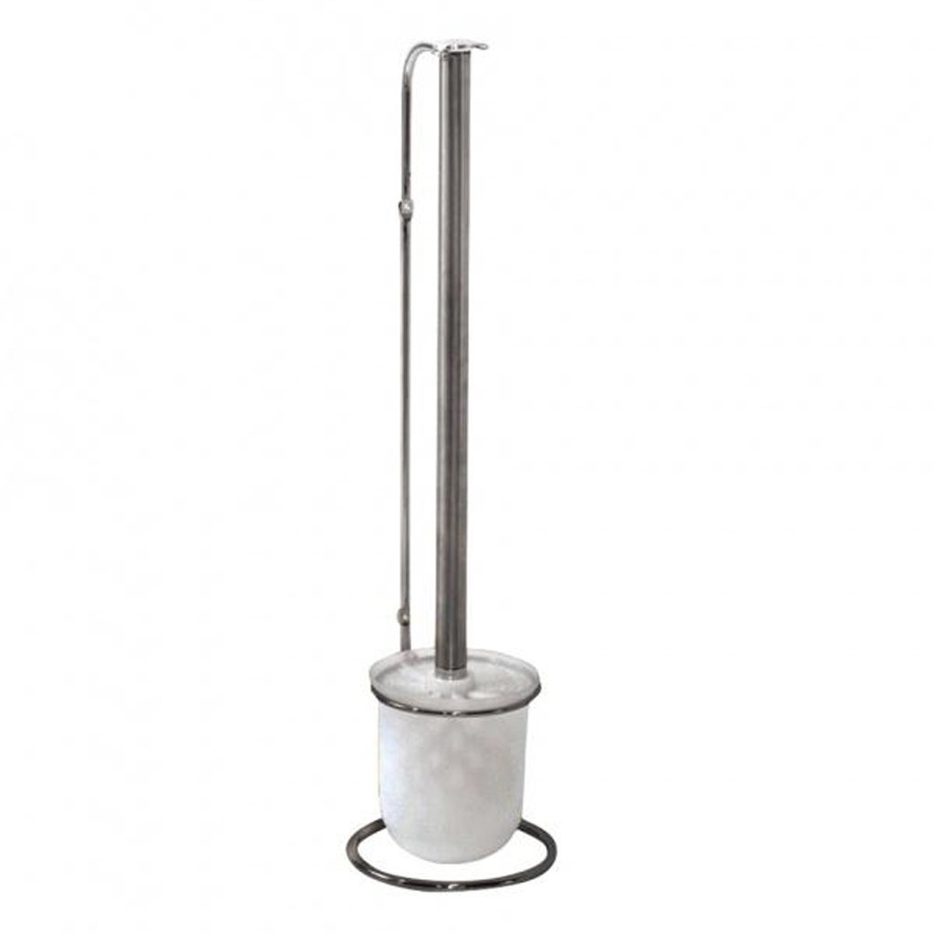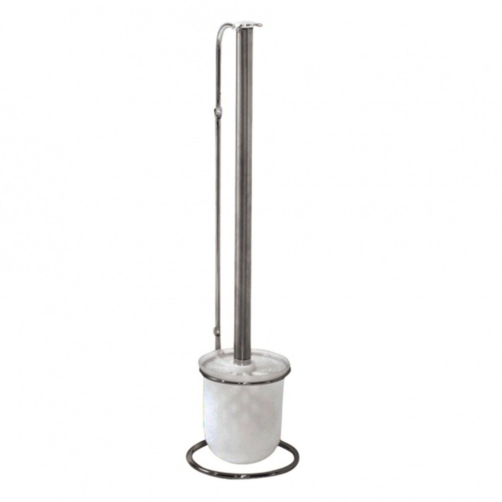 WC souprava na toaletu, štětka s kovovým držadlem v bílé plastové nádobě na kovovém stojánku. Materiál - plast, pochromovaný kov. Rozměry stojanu - 49,7 x 10,5 cm. Rozměry štětky - 47 x 7,8 cm. Barva - modrá, bílá, stříbrnáDoplňkové parametry