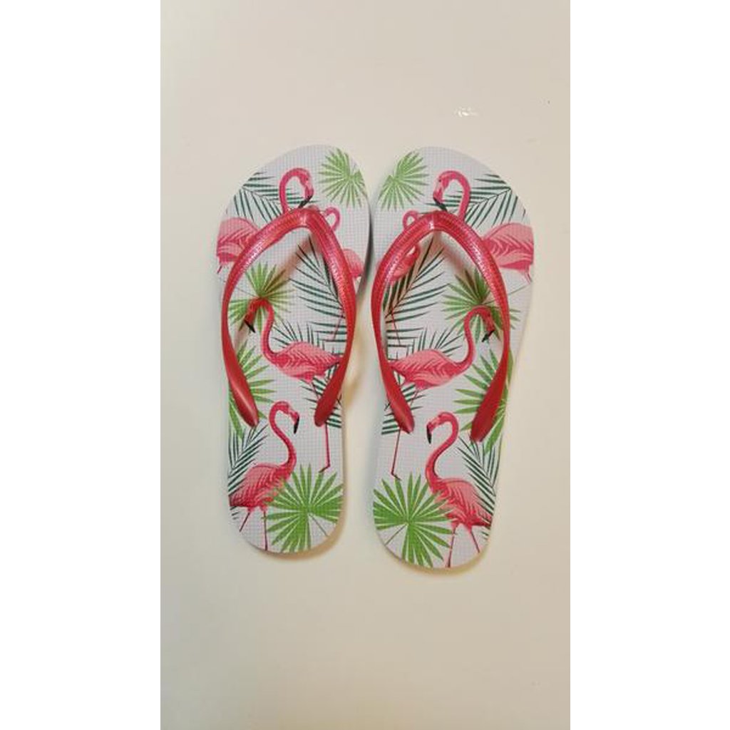 Dámské žabky s velice oblíbeným motivem "Plameňáci". Žabky jsou pohodlná obuv pro horké letní dny, k vodě, ale i na běžné nošení. Velikost EU 40. Délka 26,6 cm. Assort barev.Doplňkové parametry