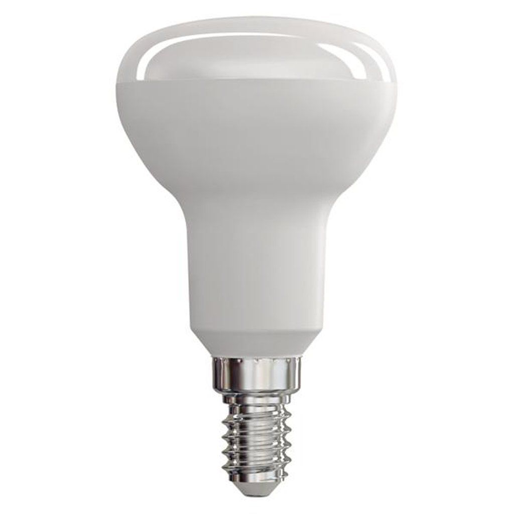 LED žárovka tvaru reflektor R50. Patice E14. Barva teplá bílá (2700 K). Příkon 6 W. Náhrada za žárovku 40 W. Svítivost 470 lm. Úhel vyzařování 120°. Index podání barev (CRI) Ra > 80. Životnost 30 000 hodin. Energetická třída A+.Doplňkové parametry